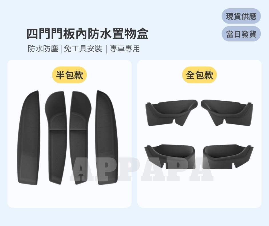 一組四入,前後門板皆可使用,全車一致性升級,不僅實用更提升內裝整體質感。
